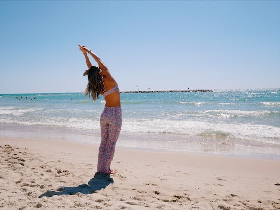 The ocean naturally relaxes the mind and spirit. Taking yoga, specifically "yin" or restorative yoga, to the beach will help calm you even more–especially if you’re feeling stressed out or overwhelmed. The rhythmic crashing of the waves will actually ease your brain into alpha waves, slowing down the parasympathetic system, along with your entire body.